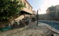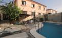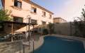 Terrain pavé et piscine privée.
